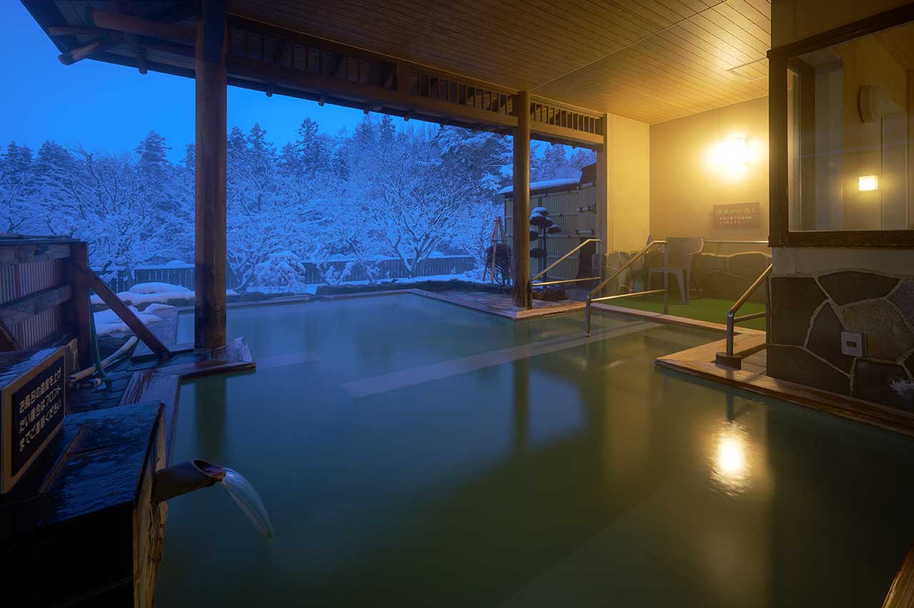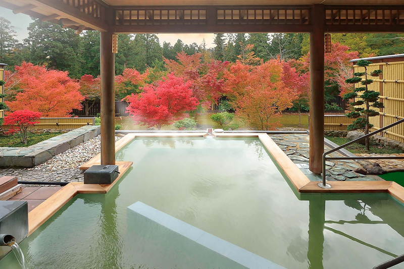 いつでもお愉しみいただける露天の湯。四季の景観・風情とともに、身も心もほっこりと温まるひととき。