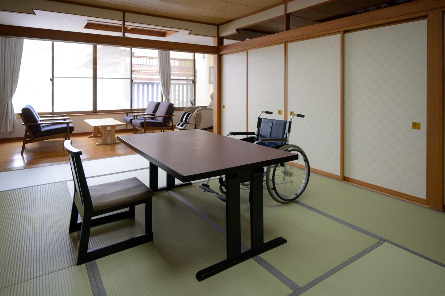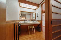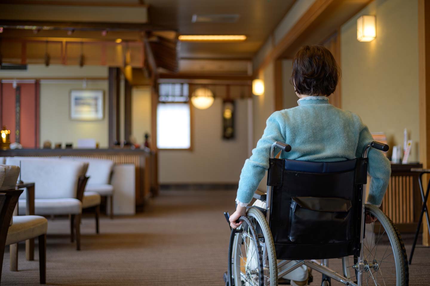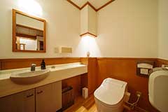 車椅子の方だけでなく付き添いの方も含めてご滞在中はお客様みなさまの負担をできる限り軽減したいという創業者の想いから、全館至るところへバリアフリー仕様の設計がなされており、当館専用の車椅子にお乗り換えいただくことで、客室露天風呂まで、館内すべての設備をお楽しみいただけます。