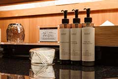 基礎化粧品やバス・アメニティに「ミレニアム・オーガニックス」を採用しています。イタリアのトスカーナ州で製造、鮮度・品質を保つため空輸後、日本国内で充填するプロセスで製品化されるなど、確かなクオリティです。オーガニックな天然成分で抗菌性のある天然精油を使用した香りの良さ、プロダクトの良さを感じられ、安心の使用感です。